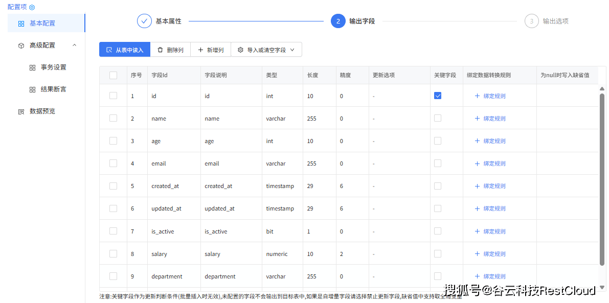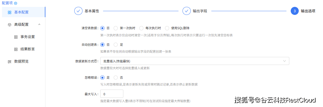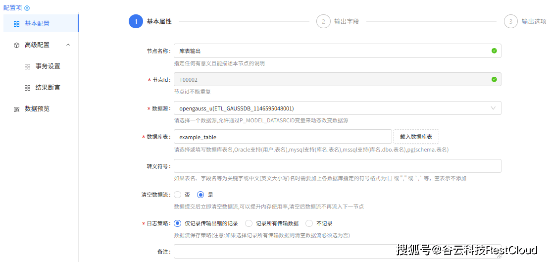 库表输出组件配置