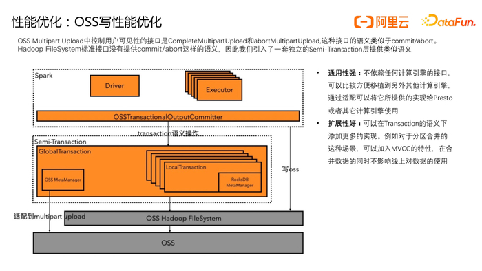 除了对OSS易用性进行改造外,ADB Spark结合OSS对象存储的特点对OSS写性能也进行了深度优化。
