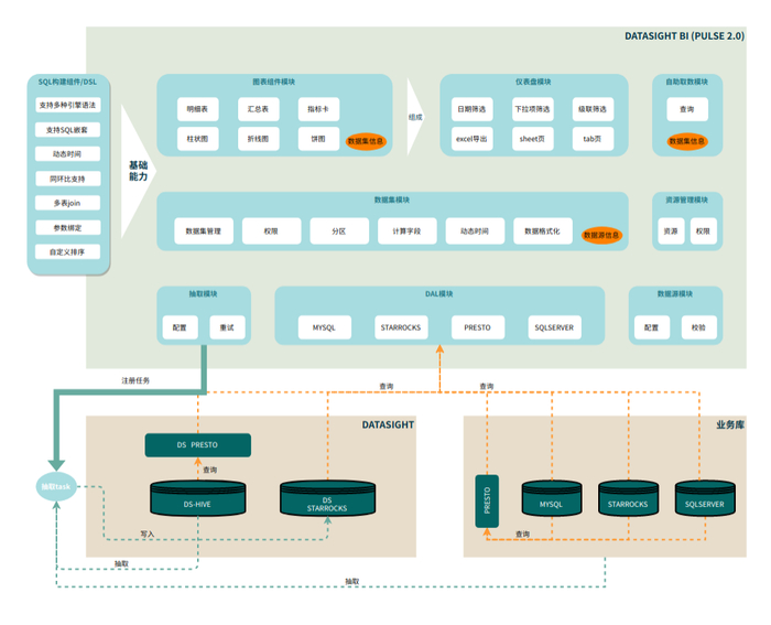 Datasight 的 BI 数据应用模块,主要解决的是用户看板需求、日常取数、分析、挖掘等场景。这些场景的数据有以下特点:数据变更频繁、报表需要实现准实时更新和大规模查询。