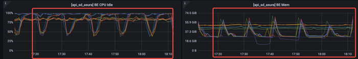 通过监控数据的分析,我们注意到 Backend 的内存使用率会在达到 100GB 后突然出现下降。初期我们猜测这可能是由于内存资源不足导致任务失败,然而在进行了扩容后,内存使用依然呈直线上升的趋势,而且即便在进行了一天的扩容之后,仍然出现了内存不足的情况。基于这些情况,我们开始怀疑系统存在内存泄漏的问题。