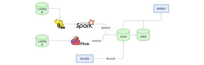 离线标签部分:使用了 Spark 任务计算出日级更新的标签,并导入 StarRocks 的离线标签表。