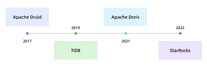 为了提升大数据分析的效率,我们陆续尝试了多种组件,如 Apache Druid、TiDB 和 Apache Doris,最终我们选择了 StarRocks。相较于同类 OLAP 产品,StarRocks 表现出以下显著优势: