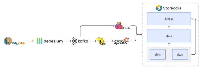 实时标签部分:使用了 Flink 任务实时监听业务数据库表变更,并实时进行数据加工处理,最后将实时标签数据导入到 StarRocks 的实时标签表。