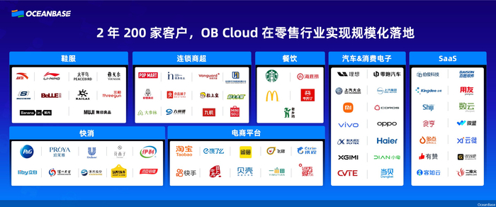 OceanBase公有云事业部总经理尹博学透露,过去两年OB Cloud已服务200余家头部零售客户,覆盖鞋服、餐饮、快消、商超、DTC新经济等全零售业态,实现规模化落地。尹博学同样指出,零售业正面临脉冲式流量冲击与AI变革的双重考验,一个稳定、高效且支持AI应用的数据底座将成为企业制胜关键。