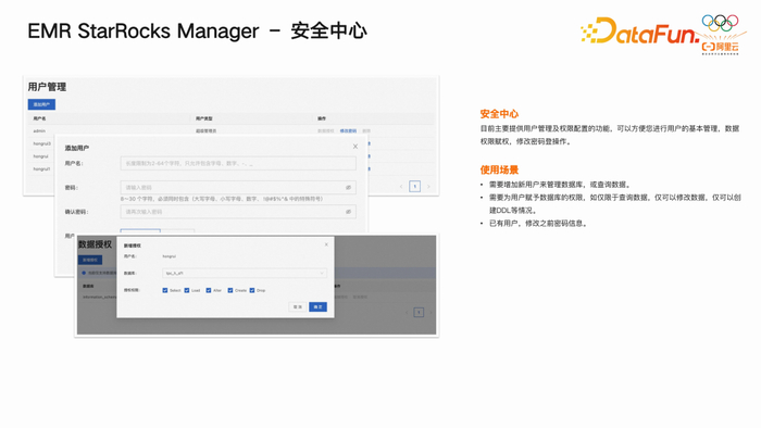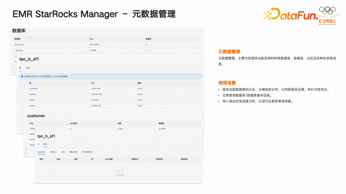 在 manager 层面,实现了查询诊断分析、元数据管理、导入任务管理、SQL Editor 等功能。此外,还实现了权限可视化控制,并关注稳定性和运维问题的解决。例如,如何快速定位导入任务、物化视图等背后任务的管理,以及在出现问题时,如何通过可视化手段帮助用户快速定位并解决问题。
