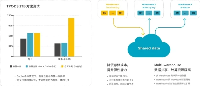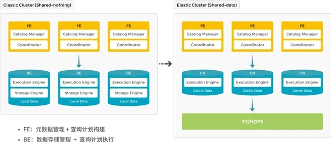 StarRocks 存算分离 2023年4月正式发布,目前已有上百家用户上线存算分离架构。与存算一体架构相比,保持了原有简洁的架构;同时极大的降低数据存储成本,提升计算的弹性能力。