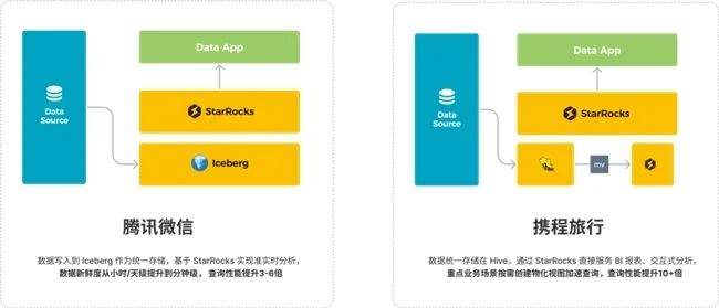 本段落分析了腾讯微信、携程旅行等企业如何利用StarRocks实现数据的准实时分析和查询性能的显著提升。